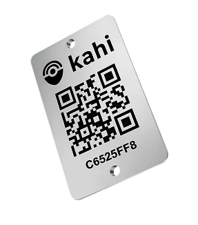 Each asset is labeled with a Kahi QR inventory tag, creating a unique digital record.
